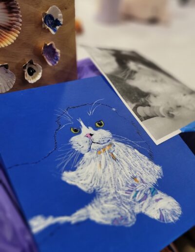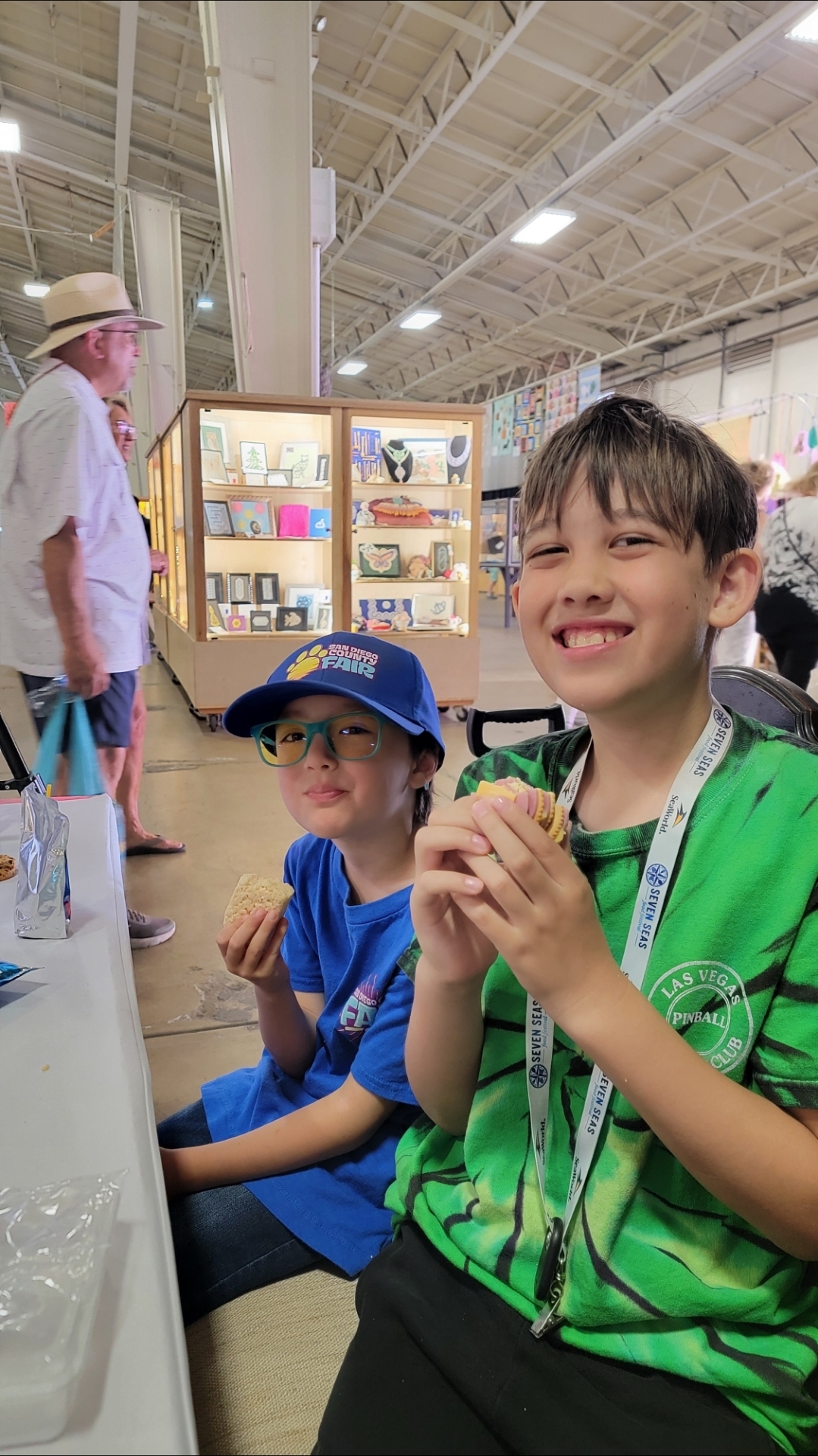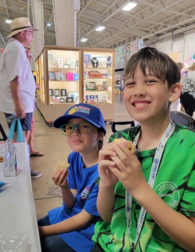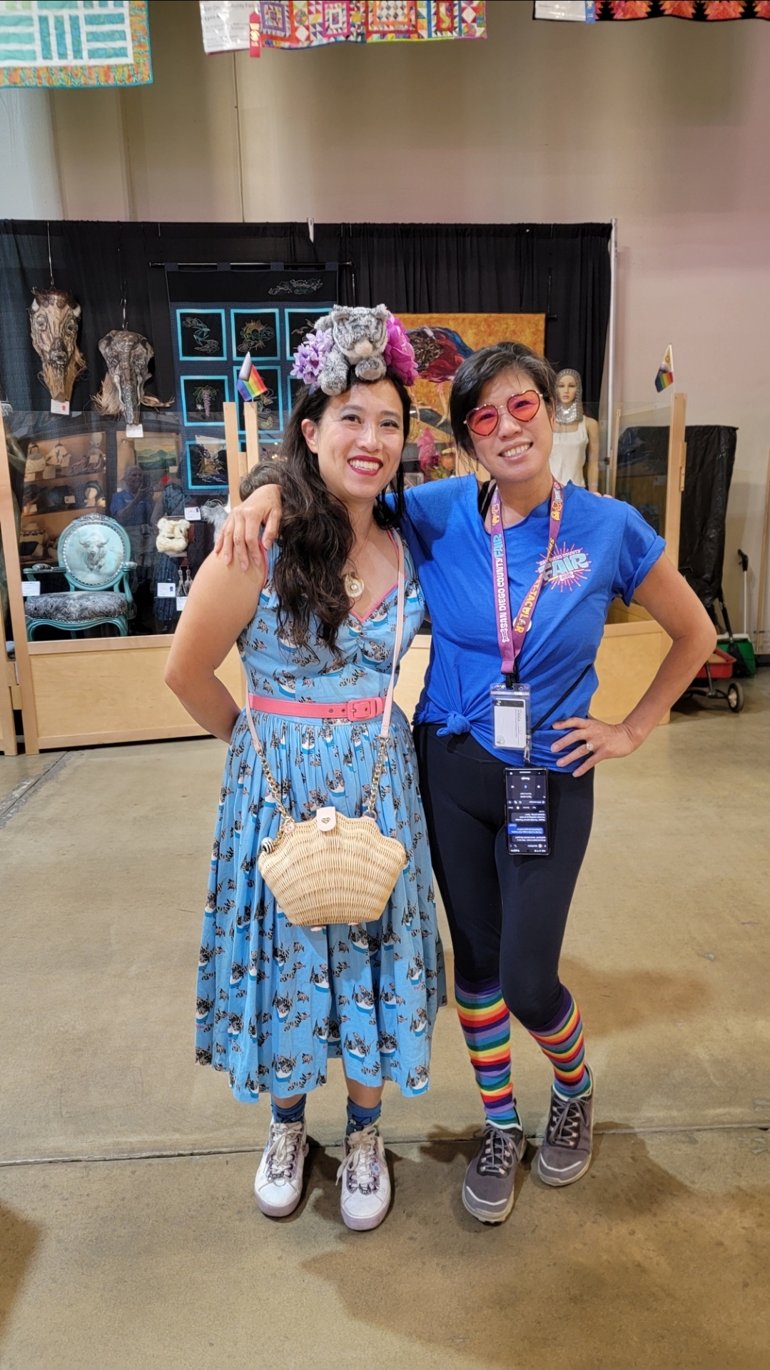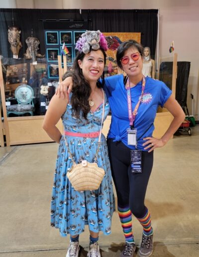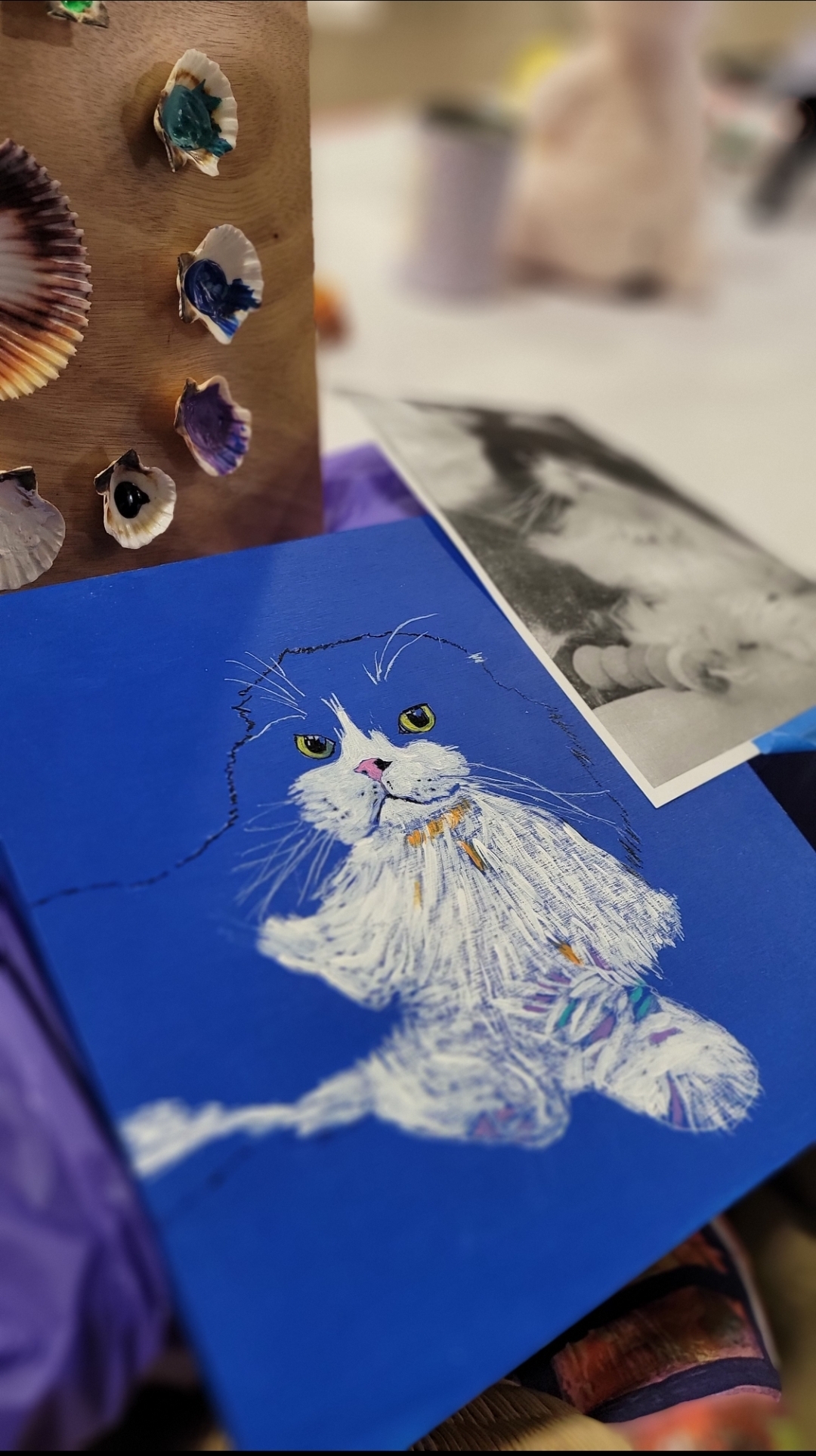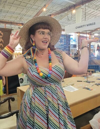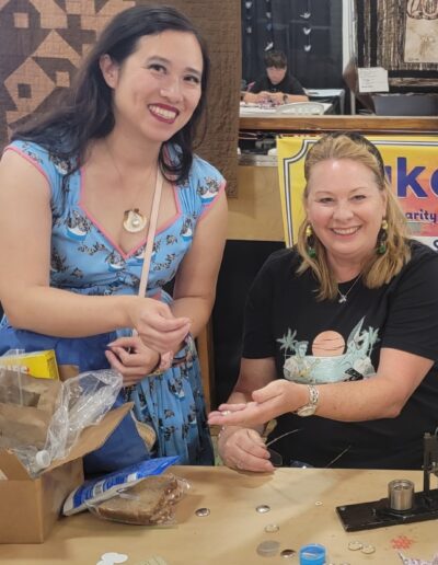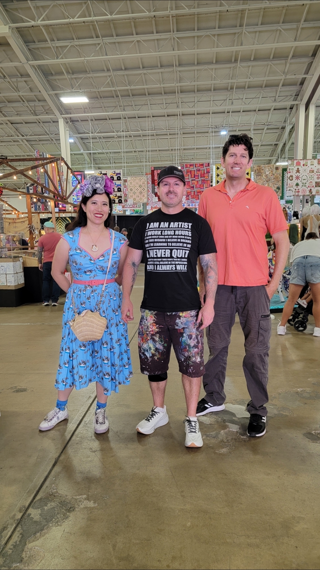 This year at the San Diego County Fair’s Summer Petacular, Charity Wings hosted two booths at the Home Arts and Hobbies section on June 21st and 22nd, 2025. On Saturday, Michael Carini of Carini Arts painted in his signature style live to the delight of the fairgoers in the Home Arts and Hobbies Area. Alessandra Thornton of Allie Tagua Jewelry crafted her beautiful eco friendly jewelry and Michelle Penick live painted a portrait of a rabbit from Zooh Corner Rabbit Rescue. Jonathan and our other volunteers, Dale, Meg and Lisa hosted a free make and take. Our good friends the SD Tiki Ladies came out to support Allie, Jennifer and Michelle on Saturday Afternoon. On Sunday, local student, Scarlet Mohi volunteered to paint a live painting of koi fish, and Jennifer painted a live portrait of a french bulldog and Harley from @EatDrinkCat on Instagram. Jonathan helped people to do a free custom 1 inch button for a free make and take. Artist Sheryl Schroder also provided some hand painted ornaments for the cause. Founder Elena and Devin came to support us as well! We raised money for animals affected during the LA Wildfires of 2025.