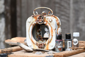 If you would like to try exciting techniques inspired by the natural look of rust and worn-out paint – this is a class for you! This finish is perfect for any vintage, steampunk or grunge-inspired project and will give you a chance to achieve a more heavy, masculine look on any surface. It is a complete mixed-media makeover which will change a simple, metal clock frame into real, old and rusty treasures.